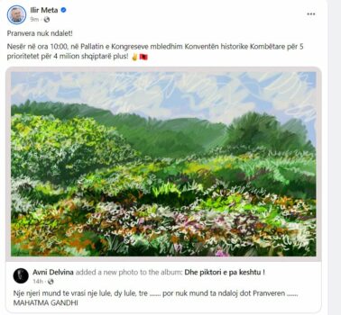 Ilir Meta, kryetari i Partisë së Lirisë, përdori një metaforë të fortë për të shprehur optimizmin dhe qëndrueshmërinë e partisë së tij përmes një postimi në rrjete sociale. Ai ndau një fotografi të piktorit Avni Delvina, ku shkruhet: “Një njeri mund të vrasë një lule, dy lule, por nuk mund ta ndalë dot pranverën.” Ky citim pasqyron idenë se pavarësisht pengesave, forcat e rinovimit dhe të rritjes nuk mund të ndalohen.