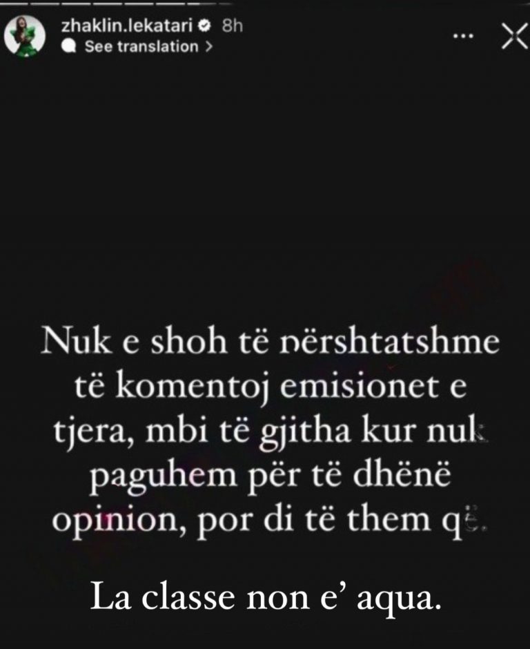 “Nuk e shoh të përshtatshme të komentoj emisionet e tjera, mbi të gjitha kur nuk paguhem për të dhënë opinion, por di të them që: ‘Klasi nuk është ujë”.– ka shkruar ish-opinionistja e “BBV”.