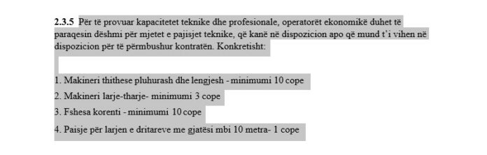 Makineria thithëse e pluhurash dhe lëngjesh është kritike për të larguar dhe kontrolluar substancat e ndryshme të ndotura. Paraqitja e mjetëve të nevojshëm tregon se operatori ekonomik është i pajisur për të ofruar shërbimin me efikasitet dhe cilësi të lartë” kërkohet në dokumentacion./GazetaJone